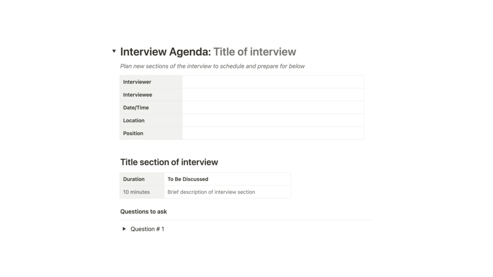 - Interviewer Notes: Designed to help you take notes during candidate interviews.