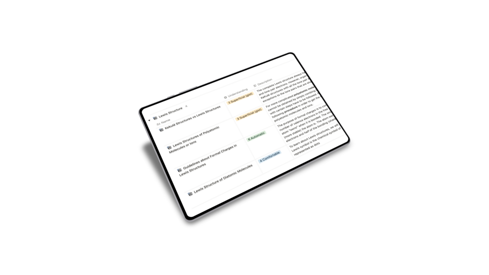 Track your understanding of each note, and in turn, each topic in your learning hub with the use of smart formulas.