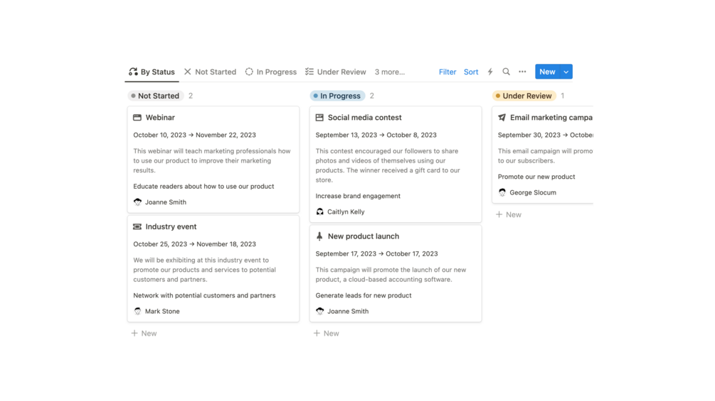- Assigned to: The person or team responsible for the marketing campaign