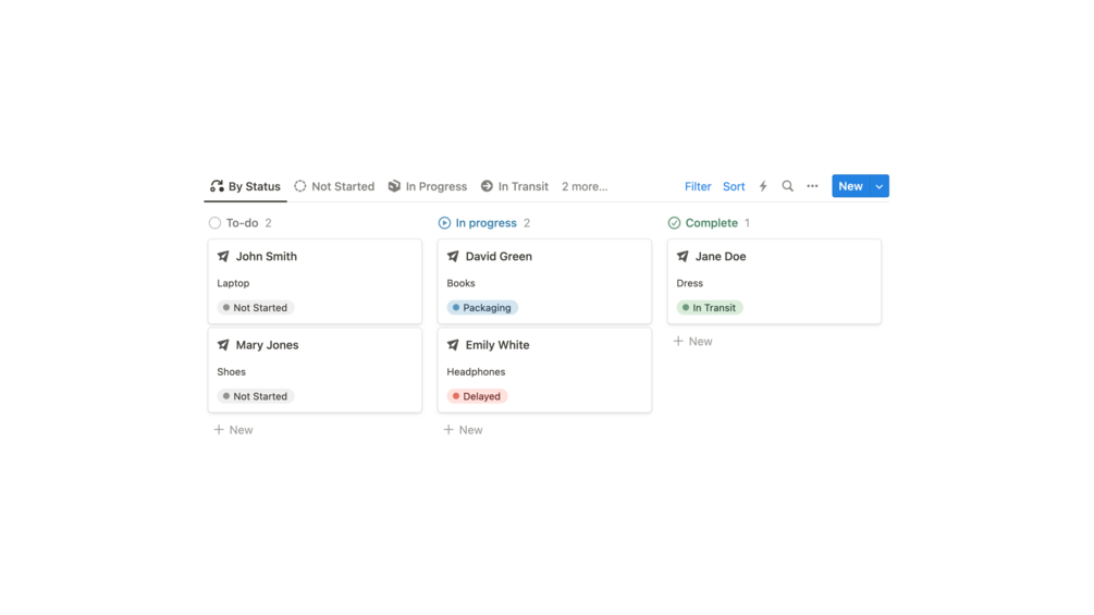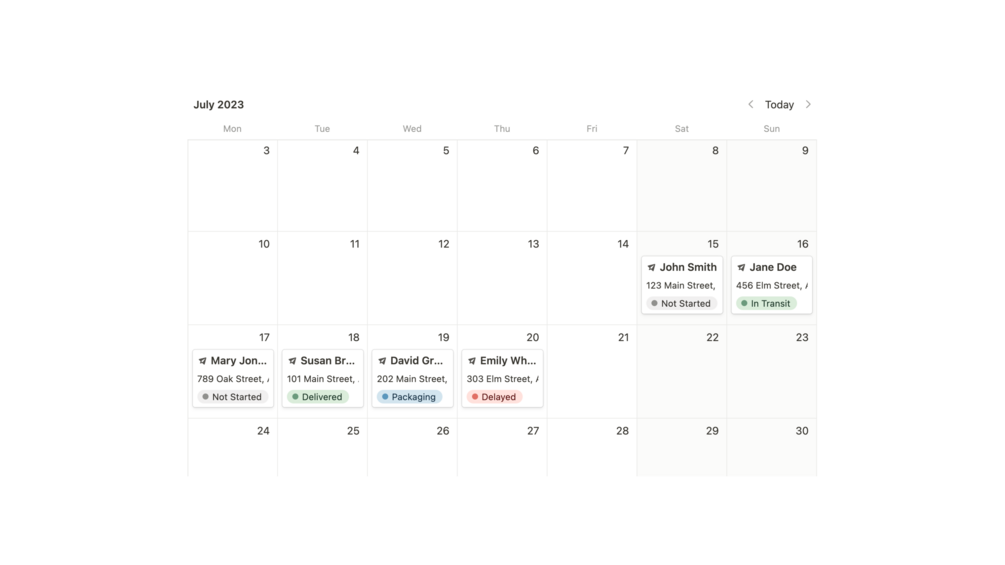 This Notion template helps you track orders for your business. With this database, you can easily store, access, and manage your package orders, including the order number, tracking ID, carrier, address, weight, dimensions, ship date, tracking link, and packaging status.