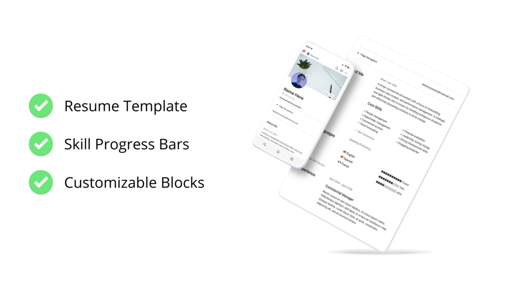 Notion’s minimal page design is the perfect place to build your resume. Build resumes with different block styles from callouts to quote blocks to tables and more. This example uses several nested columns in Notion to showcase a narrow stream of professional experience and skill descriptions down the center of the page.